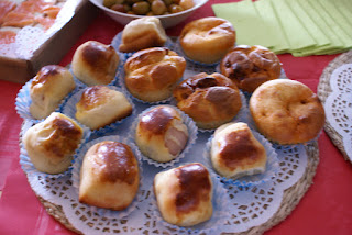 va como 850 a 900gr de harina, esta un poco pegajosa en las manos... (poquito) ... bueno ahora le dejaremos descansar hasta que doble de volume.... una vez listo... rellenar con lo que querrais .... carne, pollo, pescado, frankfurt, queso lo mejor es el feta que no se derrite del todo, se queda blando pero no derretido... bueno esta masa se puede hacer rollitos, panecitos, lo que la creatividad permita... hasta en el molde de magdalenas/tartaletas lo he usado... y perfecto... una vez hechos...con un pincel las gemas que lo has separados lo pincelamos por arriba...dejaros descansar por 15 min y hornear a 200 grados...horno pré calientado....